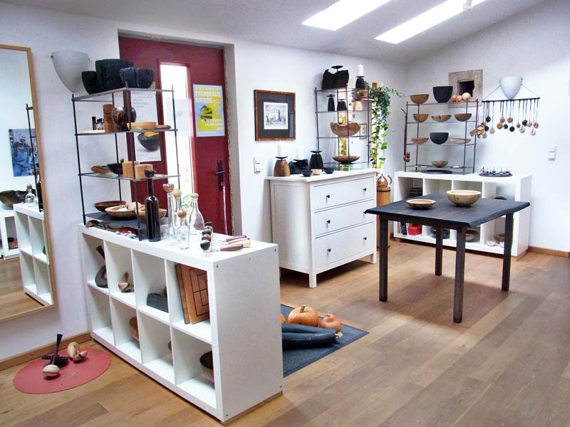 Daneben stelle ich Schüsseln, Dosen, Leuchter und Holzschmuck her sowie Flaschenverschlüsse und -öffner. Im Programm habe ich seit vielen Jahren auch Stifte und Stiftehalter. Außerdem biete ich Pfeffer- und Gewürzmühlen an sowie von Krumpholz geschmiedete Gartengeräte mit individuell gedrechselten Griffen. Auf Bestellung fertige ich Einzelstücke und -teile an, etwa für Möbel.